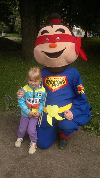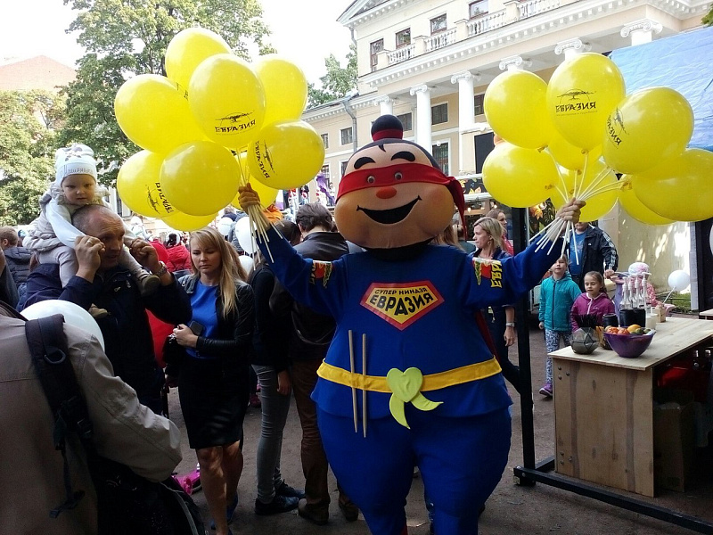 На этот раз, обаятельный ниндзя-супергерой «Евразии» порадовал гостей праздника веселыми конкурсами и викторинами и конечно, принял участие в параде ростовых кукол.