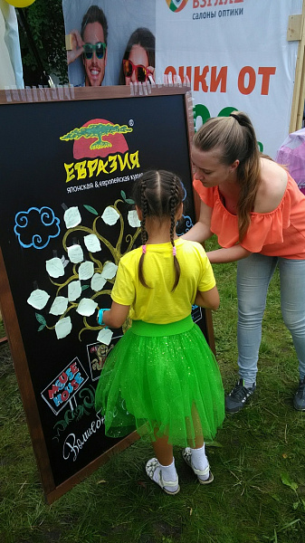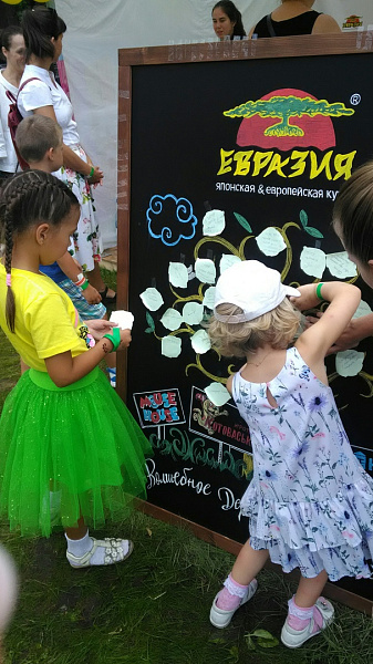 Веселью гостей не помешал даже проливной дождь, который шёл практически весь первый день! В ярких дождевиках и с весёлым смехом дети и родители делились своими пожеланиями, из которых «Евразия» впоследствии выберет 17 самых оригинальных, а их авторов, конечно, поощрит подарками.
